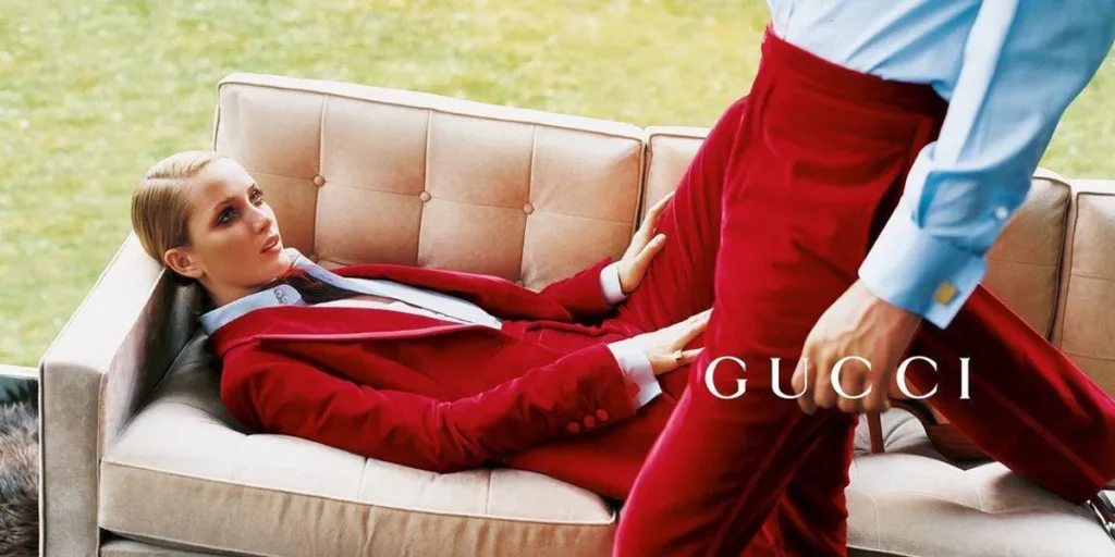 1990’larda Gucci, Tom Ford’un kreatif liderliğiyle radikal bir dönüşüm yaşar. Daha keskin, daha cesur ve daha “seksî” bir estetikle marka yeniden popüler kültürün merkezine yerleşir. Bu dönem, Gucci’nin modern lüks algısını sert biçimde yeniden tanımladığı bir kırılma noktasıdır.
