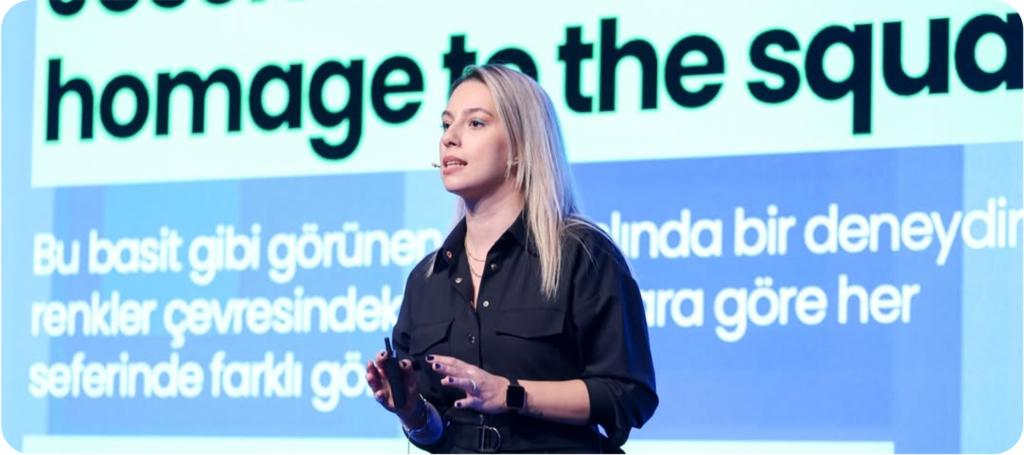 That’s Me Agency Creator & Founder Billur Ertuğrul, 1. günün son oturumunda sabit sistemlerin yerini alan dinamik kaostan,ve bunun geleceği nasıl öngörülemez kıldığından bahsetti. Ertuğrul, değişimin hızı karşısında insanın sinir sisteminin ve bilişsel kapasitesinin zorlandığı üç ana alan belirledi: