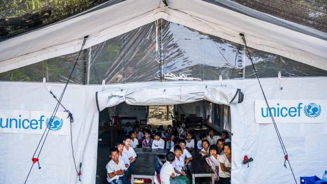 Bangladeş’te, uzun süredir devam eden mülteci krizi ve iklim kaynaklı felaketlerin şiddetlenmesiyle birlikte, dünyanın en büyük mülteci yerleşiminde yaşayan 1,2 milyon Rohingya mültecisi de dahil olmak üzere, tahminen 4,4 milyon insanın insani yardıma ihtiyacı bulunuyor. UNICEF, ortaklarıyla birlikte, Rohingya mültecileri ve ev sahibi topluluk çocuklarının güvenli eğitim alabilmeleri için, mülteci kamplarında ilk yangına ve iklim değişikliğine dayanıklı okulu inşa etti.