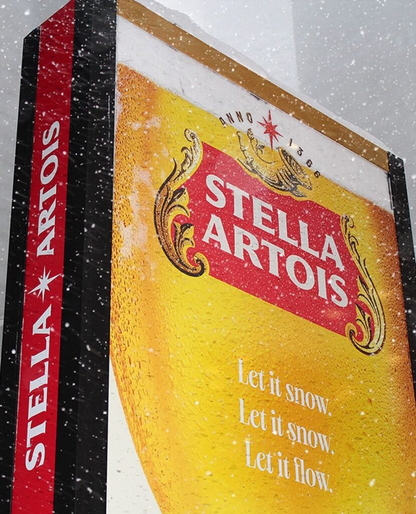 Marka, şehir merkezine bira kadehi görünümlü dev bir billboard yerleştirdi. Kar yağdıkça kadehin içi doldu ve kar, bardakta “köpük” etkisi yarattı.