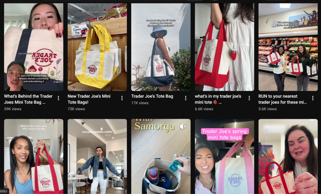 Ama tam da bu boşluk, kullanıcıların alan açmasını sağladı. TikTok’ta “What’s in my bag?” videolarında, Instagram’da gündelik kombinlerin içinde, sokak stilinde kendiliğinden görünürlük kazandı. Marka anlatmadı; topluluk anlattı. Bu yönüyle Trader Joe’s çantası, UGC-first branding yaklaşımının neredeyse ders kitaplarına girecek bir örneği haline geldi.